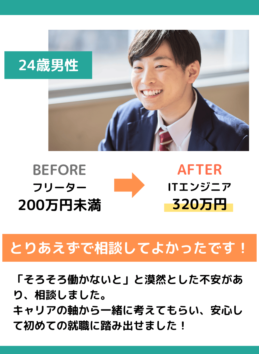 A.はい、ご安心ください。そのような若手の転職・就職支援を得意としています🔥 あなたのご要望に合ったサポートをさせていただきます。
