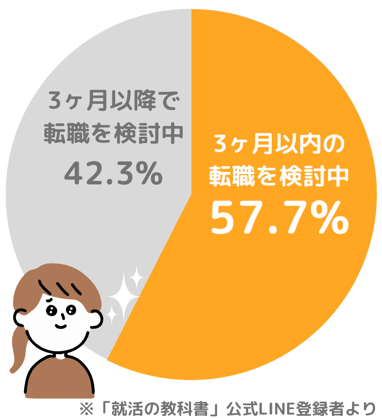 「就活の教科書」LINEに登録している『20代の57.7%が3ヶ月以内に転職を検討』しています‼️