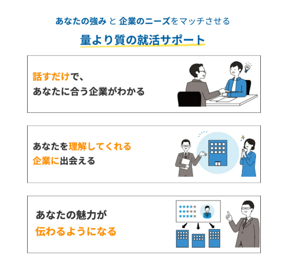 さらに、あなたの価値観に共感した優良企業からオファーが来るので、大手のナビサイトからエントリーするよりもはるかに内定をゲットしやすいですよ。