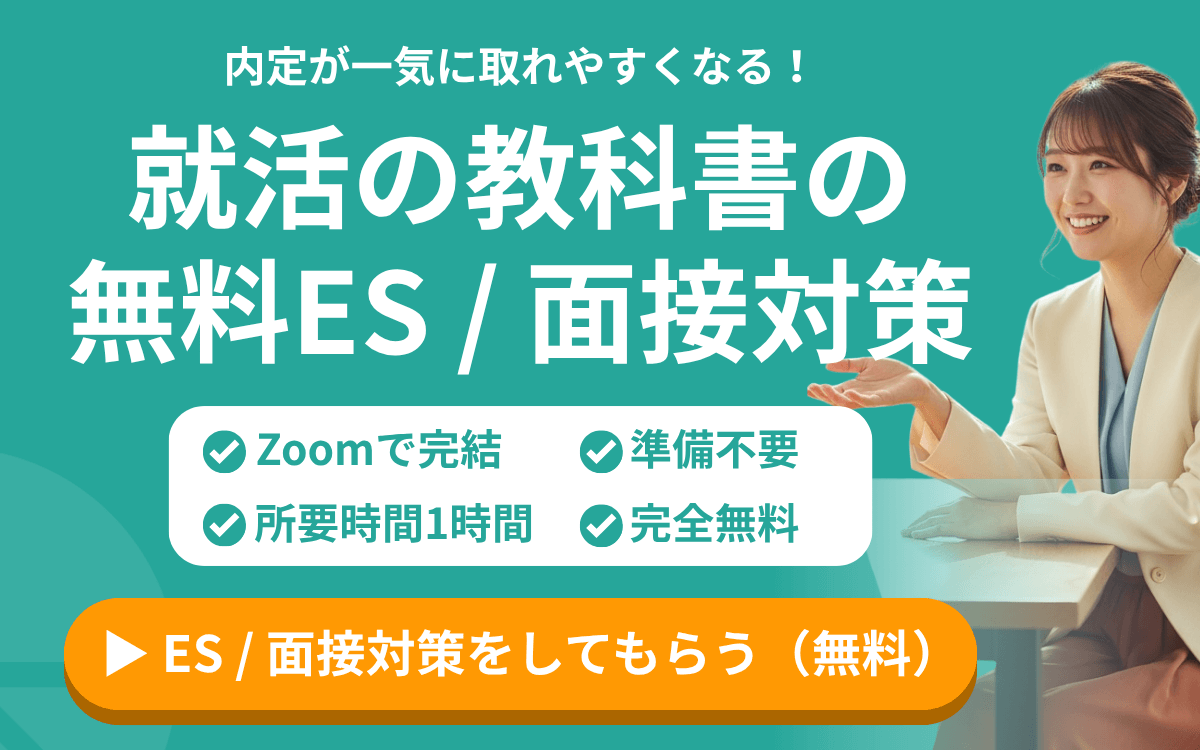 - 「通過するES / 面接対策(無料)」なら、たった1時間で「落ちるポイント」が全て見つかり一気に内定が取れやすくなる