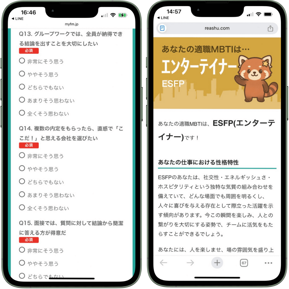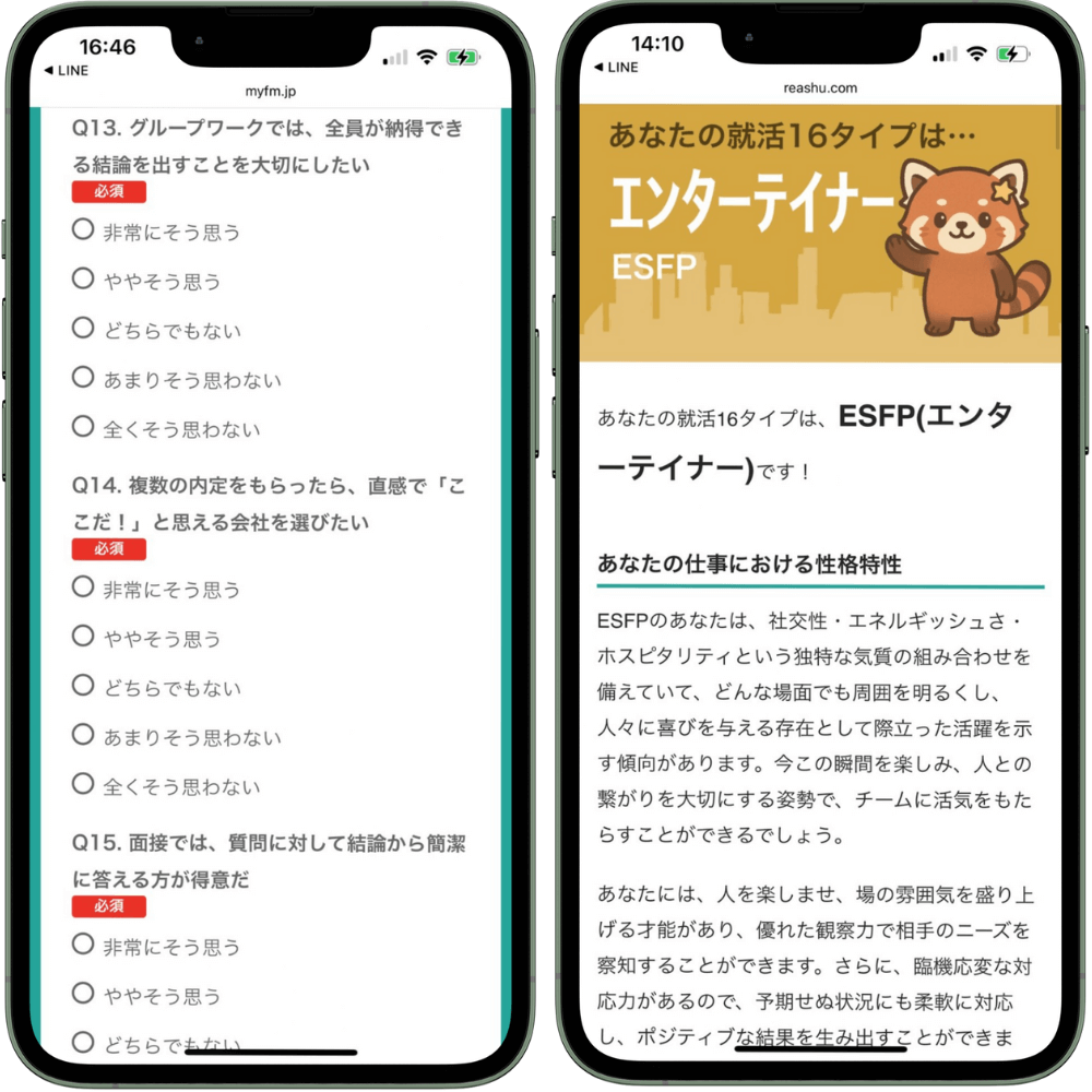 「就活16タイプ診断(無料)」なら、あなたの性格タイプに基づいた適職が分かるだけでなく、強みや価値観を言語化してくれるので、自己分析の解像度がグッと上がります。面接での伝え方も具体的に学べます!