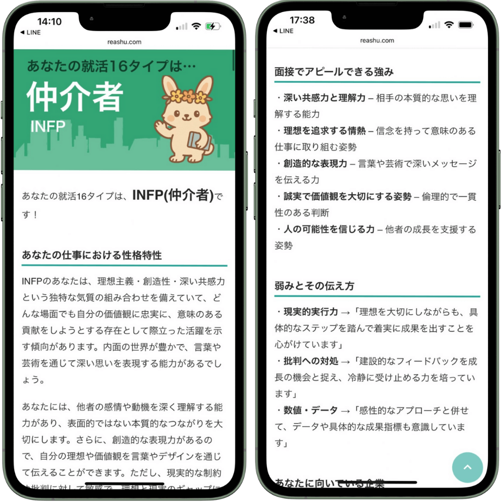 性格特性や適職TOP5、面接での強みの伝え方まで詳しく解説してくれるので、無料でLINEから受け取ってみてください!