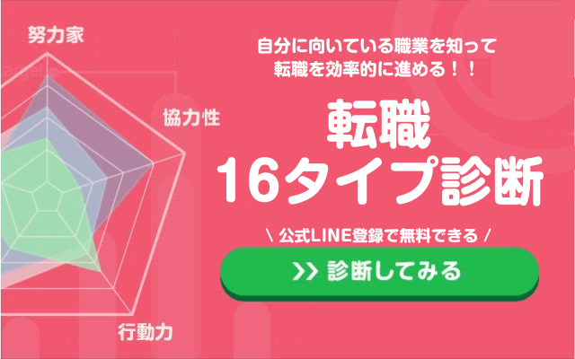 ⇒ 「転職16タイプ診断」を無料で受け取る(現在の登録者:333,762人)