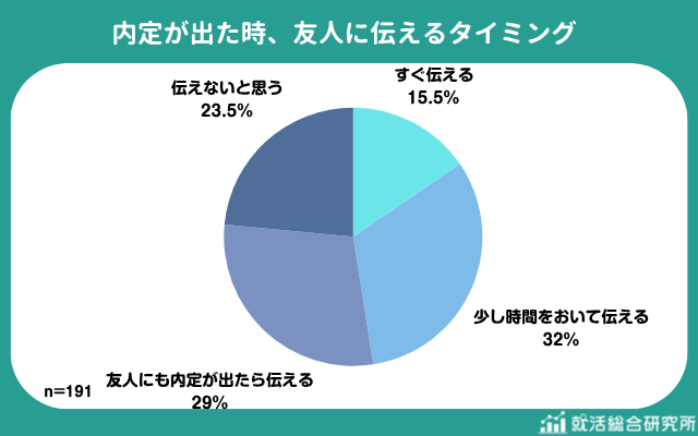 - 内定が出た時、どのタイミングで友人に伝えますか?