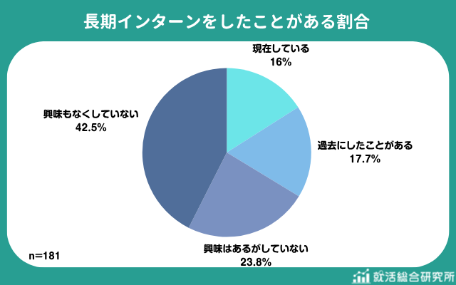 - 長期インターンに関する調査:長期インターンをしたことがある割合