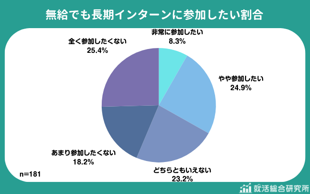 - 長期インターンに関する調査:無給でも長期インターンに参加したい割合