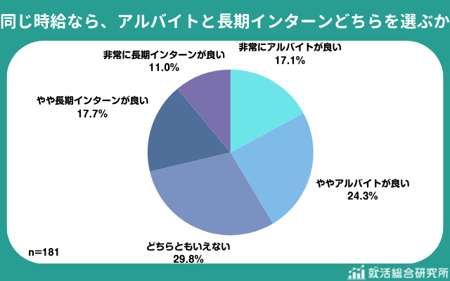 - 長期インターンに関する調査:同じ時給なら、アルバイトと長期インターンどちらを選ぶか