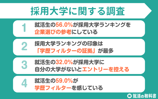 採用大学ランキングは就活生にとって学歴フィルターの象徴として警戒される一方で、進路選択の参考指標として利用されていることが明らかになりました。