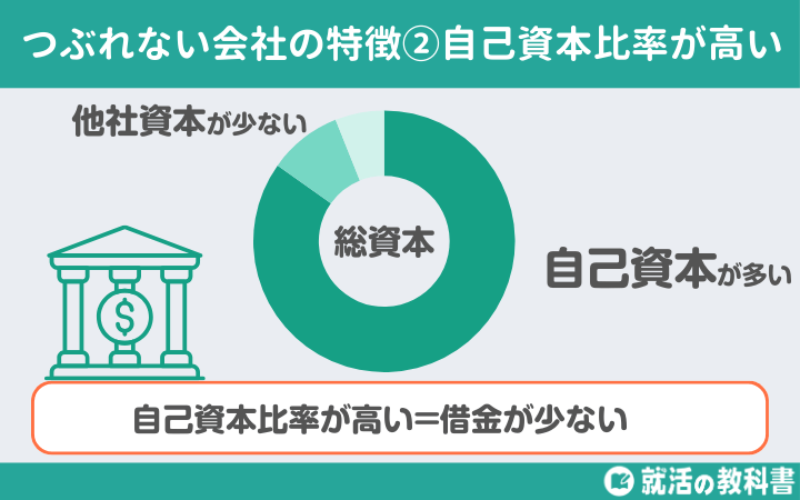 つぶれない会社の特徴の2つ目は、「自己資本比率が高い」です。