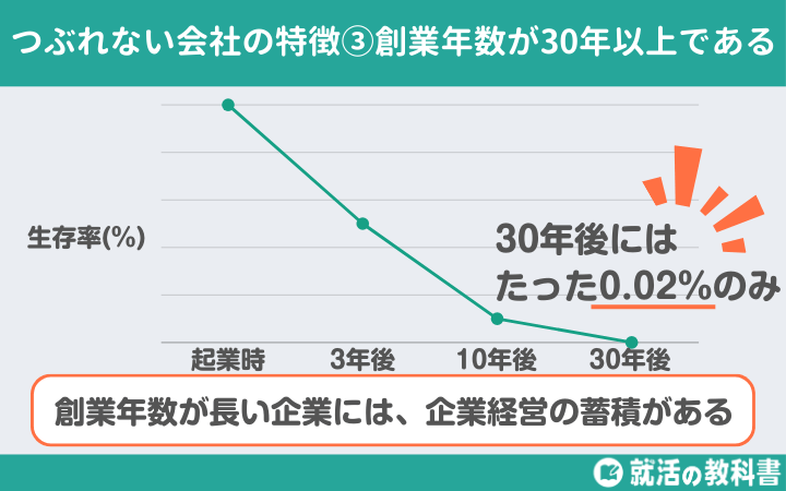 つぶれない会社の特徴の3つ目は、「創業年数が30年以上である」です。