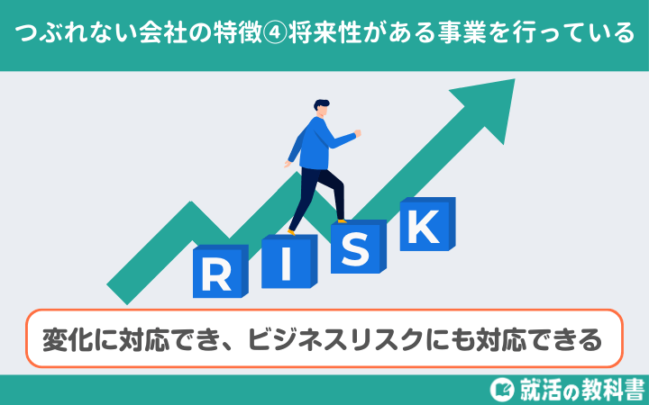 つぶれない会社の特徴の4つ目は、「将来性がある事業を行っている」です。