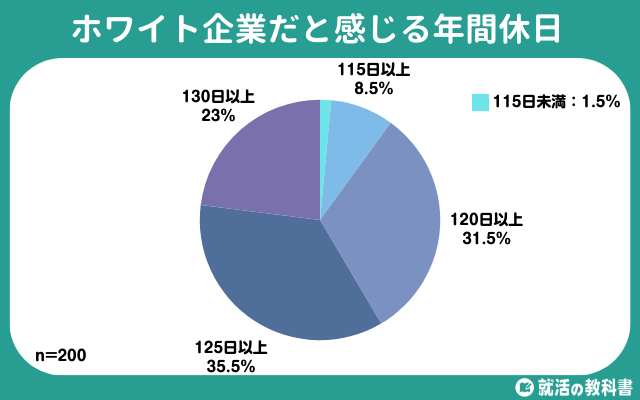 就活の教科書編集部では、ホワイトだなと感じる年間休日について200人にアンケートをとりました!